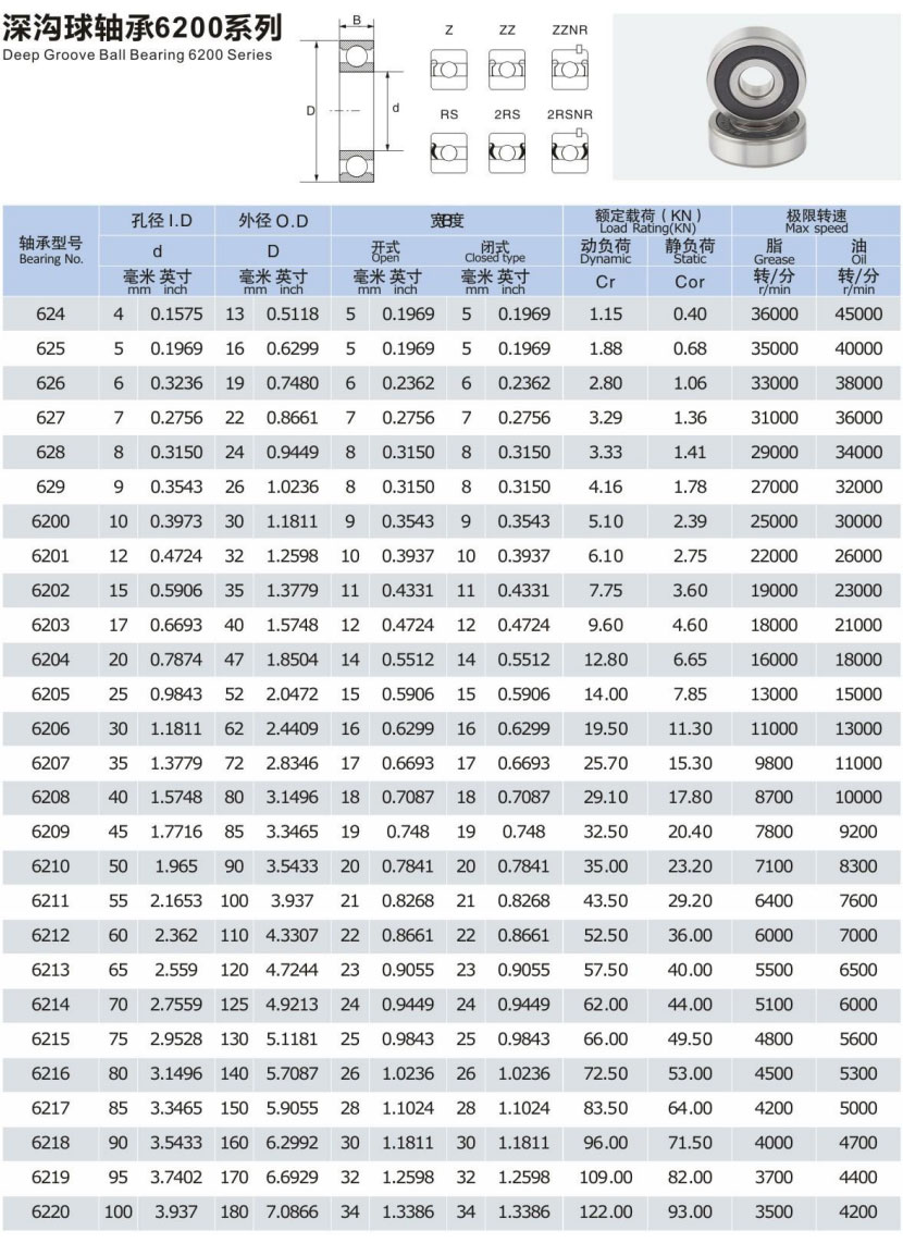 深沟球轴承6200系列