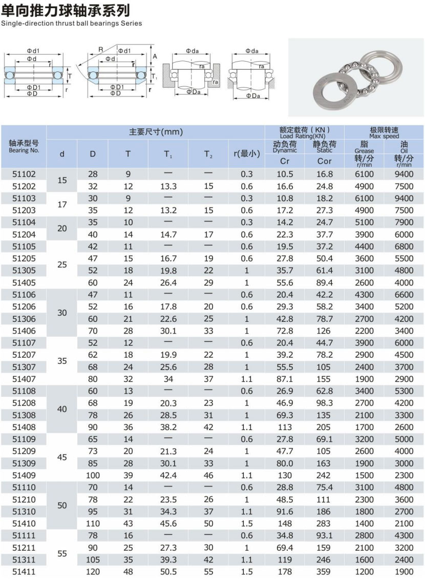 单向推力球轴承系列